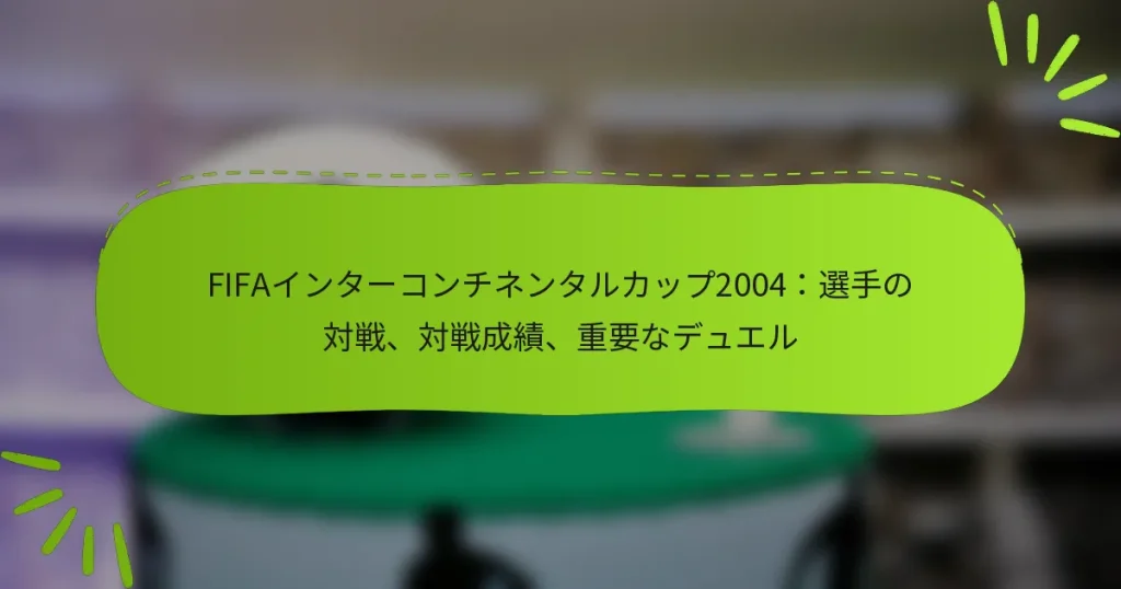 2004年のFIFAインターコンチネンタルカップは、試合の結果を決定づける重要な選手同士の対決が特徴でした。このヨーロッパと南アメリカのチャンピオン同士の対決は、彼らの競争の歴史を浮き彫りにし、個々の才能を示す重要なデュエルが展開され、戦術的な戦略にも影響を与えました。対戦成績の統計は、彼らのパフォーマンスに関する洞察を提供し、勝敗記録やフィールドでの全体的な能力のダイナミクスを明らかにしました。 2004年のFIFAインターコンチネンタルカップにおける重要な選手同士の対決は何でしたか? 2004年のFIFAインターコンチネンタルカップでは、試合の結果に大きな影響を与える重要な選手同士の対決がありました。両チームのキープレイヤーがそのスキルを発揮し、パフォーマンス指標や全体的なチームのダイナミクスに影響を与えました。 試合中の選手パフォーマンス指標 パフォーマンス指標は、高リスクの試合における選手の貢献を評価するために重要です。2004年のインターコンチネンタルカップでは、パス精度、成功したタックル、シュートの精度などの指標が選手の効果を評価する上で重要でした。例えば、高いパス精度を維持するミッドフィールダーは、試合のテンポを支配することが多いです。 ゴールキーパーのような選手も重要な影響を与え、セーブ率が重要な指標となりました。セーブ率が80%を超えるゴールキーパーは、特に接戦の試合ではゲームチェンジャーとなることがあります。 全体として、これらの指標を分析することで、個々のパフォーマンスが試合中のチームの成功や失敗にどのように寄与したかを理解することができます。 プレースタイルの比較分析 2004年のインターコンチネンタルカップに参加したチームのプレースタイルは大きく異なり、それが対決に影響を与えました。一方のチームはボール保持を重視し、短いパスを中心にコントロールを維持するアプローチを好み、もう一方はカウンターアタックと迅速なトランジションに依存していました。 このスタイルの対比は、特にミッドフィールダーの位置で興味深い選手同士の対決を生み出し、ボール保持とインターセプトのスキルが重要でした。プレーを破壊するのが得意な選手は、相手のボール保持ゲームを妨害する上で不可欠でした。 これらのプレースタイルを理解することで、戦術的な決定が個々のパフォーマンスや試合全体の結果にどのように影響を与えたかを評価することができます。 選手のポジションが試合結果に与える影響 選手のポジションは、インターコンチネンタルカップの試合のダイナミクスを決定する上で重要な役割を果たしました。例えば、得点機会を創出するフォワードの効果は、試合の結果に直接影響を与えました。守備の弱点を突くことができるストライカーは、チームの攻撃の中心となることが多いです。 守備の選手も重要な影響を与えました。空中戦やタックルに優れたセンターバックは、守備の安定性を維持するのに役立ちました。相手のフォワードを阻止する能力は、スコアを有利に保つ上で重要でした。 したがって、異なるポジション間の相互作用とそれぞれの責任は、試合の最終結果において重要な要素でした。 選手間のライバル関係の歴史的背景 2004年のインターコンチネンタルカップは、単なる試合ではなく、選手同士の歴史的なライバル関係の継続であり、対決に緊張感を加えました。両チームの選手は過去のトーナメントで対戦しており、その物語が賭けを高めました。 これらのライバル関係は、選手が過去の対戦に基づいて相手を上回ろうとするため、パフォーマンスを高めることがよくあります。これらの歴史的な対決の心理的側面は、選手が自分のゲームを引き上げる原動力となり、より競争的にさせることがあります。 これらのライバル関係を理解することで、選手の動機に文脈を与え、試合中の特定の行動を説明することができます。 注目すべき個々の貢献 個々の貢献は、2004年のインターコンチネンタルカップの結果を形作る上で重要でした。重要な選手が得点、アシスト、または重要な守備プレーを通じて、重要な瞬間に活躍しました。 例えば、試合のペースをコントロールし、守備にも貢献したミッドフィールダーの際立ったパフォーマンスは、決定的なゴールを決めたフォワードと同じくらい影響力があります。これらの貢献は、統計を超えて、選手のチームの士気や戦略に対する影響を反映しています。 これらの個々の努力を認識することで、試合中のチームの集団的成功における各選手の役割の重要性が強調されます。 2004年のFIFAインターコンチネンタルカップの対戦成績はどうでしたか? 2004年のFIFAインターコンチネンタルカップでは、ヨーロッパと南アメリカのチャンピオン同士の注目すべき対決があり、彼らの競争の歴史が示されました。対戦成績の統計は、彼らのパフォーマンスに関する洞察を提供し、勝敗記録、得点、守備能