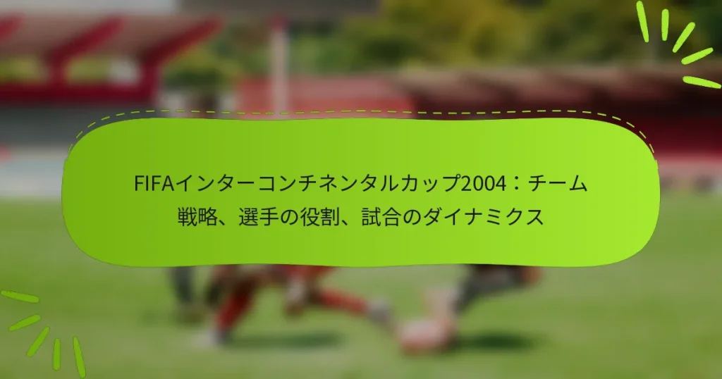 FIFAインターコンチネンタルカップ2004は、各試合の結果に重要な影響を与える攻撃的および防御的戦術を組み合わせたチーム戦略の豊かなタペストリーを強調しました。コーチは特定のフォーメーションを実施し、リアルタイムで調整を行い、選手は定義された役割を実行して試合のダイナミクスに大きな影響を与えました。このトーナメントは、個々の輝きを示すだけでなく、高リスクの状況におけるチームワークと適応力の重要性を強調しました。 FIFAインターコンチネンタルカップ2004におけるチーム戦略は何でしたか? FIFAインターコンチネンタルカップ2004では、攻撃的および防御的戦術の両方を強調した多様なチーム戦略が披露されました。チームは特定のフォーメーションを採用し、試合のダイナミクスに適応するために戦略的な調整を行い、コーチングスタイルや選手の役割によって大きく影響を受けました。 チームが使用した攻撃的フォーメーション 2004年のトーナメントでは、チームは得点機会を最大化するためにさまざまな攻撃的フォーメーションを利用しました。一般的に使用されたフォーメーションには、4-4-2および3-5-2のセットアップが含まれ、攻撃と中盤のコントロールに柔軟性をもたらしました。 4-4-2フォーメーション:このクラシックなセットアップは、2人のストライカーと堅実な中盤を備えたバランスの取れたアプローチを提供し、迅速なカウンターアタックを促進しました。 3-5-2フォーメーション:このフォーメーションはウィングプレイを強調し、チームが中盤をオーバーロードさせ、重要なエリアで数的優位を生み出すことを可能にしました。 これらのフォーメーションにおける重要な選手は、しばしばプレイメーカーやターゲットフォワードなどの特定の役割を担い、相手の防御の弱点を突くことが求められました。 試合中に採用された防御的戦術 2004年のインターコンチネンタルカップでは、防御的戦略が重要であり、チームは構造と規律を維持することに焦点を当てました。最も一般的な防御的戦術には、ゾーンマーキングとプレッシングが含まれ、相手のリズムを崩すことを目的としました。 ゾーンマーキング:選手は特定のエリアをカバーするように割り当てられ、より良い組織化を可能にし、攻撃者のための隙間を最小限に抑えました。 ハイプレス:チームは積極的なプレッシングを採用し、迅速にボールを奪い返し、相手にミスを強いることを目指しました。 これらの戦術は、ゴールを防ぐだけでなく、カウンターアタックの機会を生み出すことも目的としており、防御プレイの二重性を示しました。 トーナメントを通じて行われた重要な戦略的調整 トーナメントを通じて、チームは試合の状況や相手の強さに基づいて重要な戦略的調整を行いました。コーチはしばしば試合の流れに応じてフォーメーションや選手の役割を変更しました。 フォーメーションの変更:チームはリードしているときに攻撃的なフォーメーションからより防御的なフォーメーションに頻繁にシフトし、アドバンテージを守りました。 交代:戦術的な交代は一般的で、新しい選手を投入して疲れたディフェンダーを突くか、中盤を強化しました。 これらの調整は、競争力を維持し、各試合のダイナミックな性質に適応するために不可欠でした。 コーチングスタイルがチーム戦略に与える影響 コーチングスタイルは、2004年のインターコンチネンタルカップにおけるチーム戦略の形成に重要な役割を果たしました。強い戦術的背景を持つコーチは、構造的なプレイと規律を強調することが多く、他のコーチは創造性と流動性を奨励しました。 戦術的コーチ:詳細なゲームプランに焦点を当て、選手が特定のフォーメーション内での役割を理解するようにしました。 創造的コーチ:攻撃的なプレイにおいてより自由を許可し、選手がリスクを取り、フィールドで自分を表現することを奨励しました。 これらのスタイルの効果は、選手の適応力やコーチのビジョンの理解に大きく依存しました。 チーム戦略の比較分析 チーム 攻撃的フォーメーション 防御的戦術 コーチングスタイル チームA 4-4-2 ゾーンマーキング 戦術的 チームB 3-5-2 ハイプレス 創造的 チームC 4-3-3 混合アプローチ バランス型 この比較分析は、異なるチームが独自の戦略でトーナメントに臨んだ方法を強調し、彼らの強みやコーチング哲学を反映しています。これらの戦略を理解することは、試合のダイナミクスや全体的なトーナメントの結果に対する洞察を提供します。 FIFAインターコンチネンタルカップ2004で重要な役割を果たした選手は誰ですか? FIFAインターコンチネンタルカップ2004では、いくつかの選手が試合の結果を形作る重要な貢献をしました。彼らのポジション、戦略、個々のパフォーマンスは、チームの成功を決定づける上で重要でした。 重要な選手とそのポジション トーナメントの重要な選手には、フォワード、中盤、ディフェンダー
