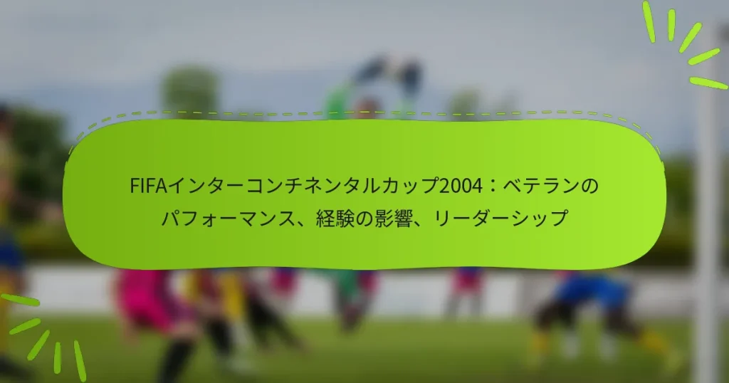 2004年のFIFAインターコンチネンタルカップは、ベテラン選手の重要な影響を強調しました。彼らのパフォーマンスはチームの成果にとって重要でした。彼らの経験とリーダーシップは、激しい瞬間においてチームを安定させるだけでなく、チームの結束と士気を高め、最終的には試合の結果に影響を与え、若いチームメイトを指導しました。 2004年のFIFAインターコンチネンタルカップでの主なベテラン選手のパフォーマンスは何でしたか? 2004年のFIFAインターコンチネンタルカップでは、チームの成功にとって重要な役割を果たした複数のベテラン選手が活躍しました。彼らの経験とリーダーシップは、試合の結果に影響を与えるだけでなく、高圧的な状況での重要な安定性を提供しました。 際立った選手とその貢献を強調する ロベルト・カルロスやパオロ・マルディーニのような主要なベテラン選手は、トーナメント中に際立っており、卓越したスキルとリーダーシップを示しました。強力なフリーキックで知られるロベルト・カルロスは、チームの攻撃戦略に大きく貢献し、マルディーニの守備力は堅固なディフェンスラインを維持するのに役立ちました。 もう一人の注目すべきベテランはエドガー・ダビッズで、彼の中盤での存在はボールの配分とコントロールを向上させました。試合を読み、タイムリーなインターセプトを行う能力は、接戦において重要であり、重要な瞬間における経験の重要性を示しました。 ベテラン選手のパフォーマンスに関する統計分析 トーナメント中のベテラン選手は、パス精度や守備タックルなどの重要な指標で若い選手をしばしば上回りました。例えば、ロベルト・カルロスのような選手は、パス精度が80%台後半に達しましたが、若い選手はそれよりも低い割合でした。 さらに、ベテラン選手は優れたゲーム認識を示し、しばしば得点機会につながる重要な決定を下しました。プレッシャーの中で冷静さを保つ能力は、ターンオーバーを減少させ、高リスクの試合では重要です。 試合の結果に対するベテラン選手の影響 試合の結果に対するベテラン選手の影響は、トーナメント全体で明らかでした。彼らのフィールド上でのリーダーシップは、しばしばチームの結束を高め、若い選手が活躍できるようにしました。例えば、強敵との重要な試合では、パオロ・マルディーニの冷静な態度がディフェンスを安定させ、重要なクリーンシートにつながりました。 さらに、ベテラン選手はペナルティシュートアウトの際に主導権を握ることが多く、彼らの経験は非常に貴重でした。このような状況でプレッシャーを扱う能力は、しばしばチームに有利に働きました。 トーナメントからの逸話や記憶に残る瞬間 トーナメントからの記憶に残る瞬間の一つは、ロベルト・カルロスの驚くべきフリーキックで、彼のチームにとって重要な勝利を確保しました。そのシュートの力強さと精度は観客を驚かせ、重要な瞬間におけるベテランのスキルの影響を強調しました。 もう一つの逸話は、パオロ・マルディーニの最後の瞬間のタックルで、確実なゴールを防ぎ、彼の守備本能とリーダーシップを示しました。このような瞬間は試合を定義するだけでなく、ファンや選手に長く記憶に残る印象を与えました。 若い選手との比較パフォーマンス指標 選手タイプ パス精度 (%) 守備タックル ゴール/アシスト ベテラン選手 85-90 3-5 1-2 若い選手 75-80 1-3 0-1 この比較は、ベテラン選手がチームにもたらした具体的な利点を示しており、特に重要なパフォーマンス指標において顕著です。彼らの経験はしばしば高いパス精度とより効果的な守備貢献に変わり、高リスクのトーナメントにおけるベテラン選手の価値を強調しています。 2004年におけるベテランの経験はチームダイナミクスにどのように影響しましたか? ベテランの経験は、2004年のFIFAインターコンチネンタルカップにおけるチームダイナミクスを形成する上で重要な役割を果たしました。熟練した選手の存在は、フィールド上でのリーダーシップを高めるだけでなく、チームメンバー間の強い結束感と士気を育みました。 チームリーダーシップにおけるベテラン選手の役割 ベテラン選手は、チーム内で重要なリーダーシップの役割を担い、若いチームメイトを高リスクの試合の複雑さを通じて導きます。彼らの豊富な経験は、迅速な意思決定を行い、重要な瞬間に方向性を提供することを可能にし、チームのパフォーマンスにとって重要です。 これらのリーダーはロールモデルとして機能し、プロフェッショナリズムとコミットメントを示し、若い選手が自らのパフォーマンスを向上させるように刺激します。プレッシャーの中で冷静さを保つ能力は、チーム全体に自信を与えます。 選手間のコミュニケーションとメンターシップ 効果的なコミュニケーションは、どのチームスポーツにおいても不可欠であり、ベテラン選手はこの分野で優れています。彼らは