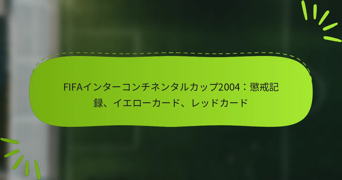 2004年のFIFAインターコンチネンタルカップは、高いレベルの懲戒処分が特徴であり、いくつかのイエローカードとレッドカードが選手の出場可能性や試合の流れに影響を与えました。イエローカードの発行はトーナメントの競争の激しさを強調し、受けた2枚のレッドカードは試合のダイナミクスやイベント全体の物語に大きな影響を与えました。