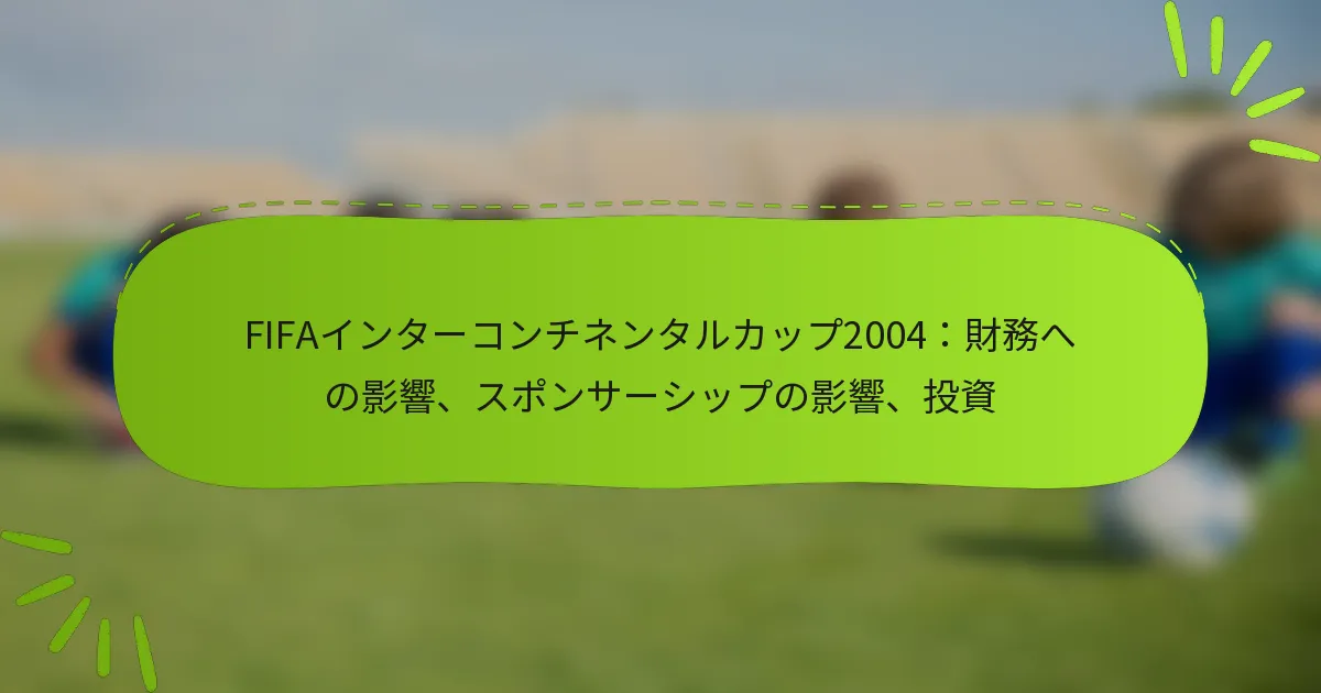 スポンサーシップは、2004年のFIFAインターコンチネンタルカップの形を作る上で重要な役割を果たし、収益を大幅に増加させ、ブランドの可視性を高め、ファンを引きつけました。これらのスポンサーシップの財政的影響は深刻で、マーケティングやプロモーション活動への投資が増加しました。