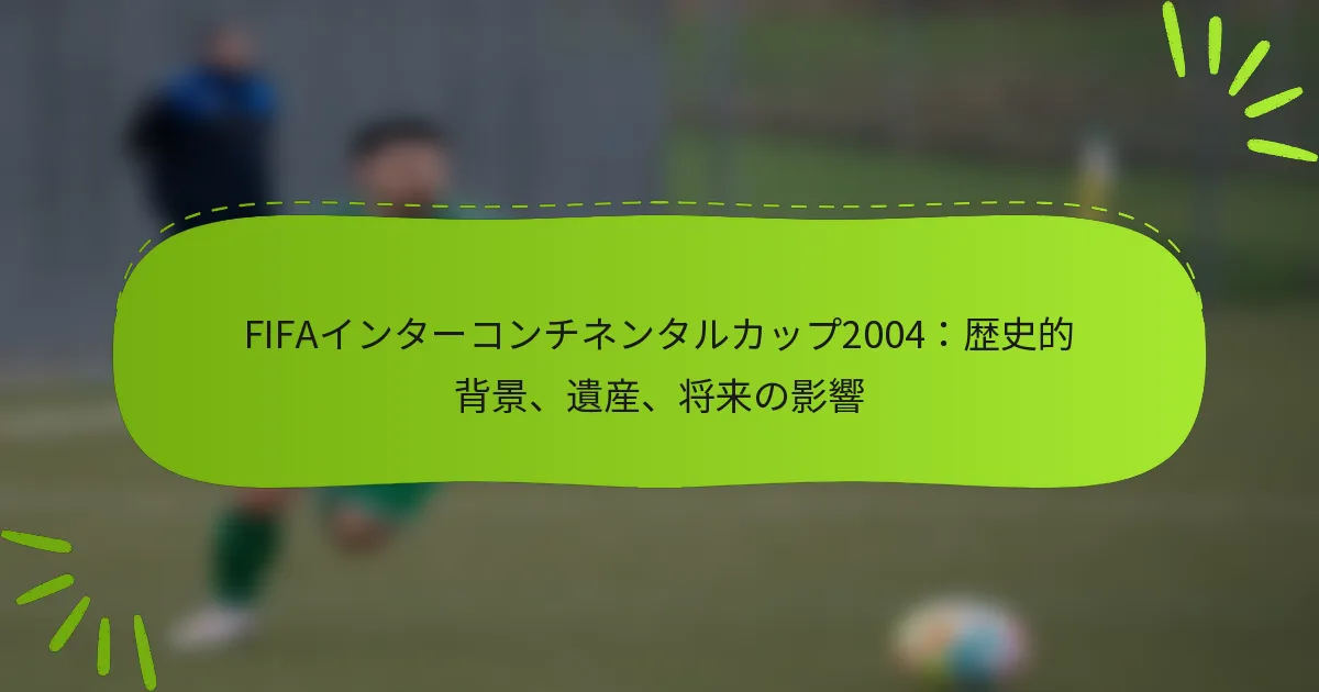 2004年のFIFAインターコンチネンタルカップは、国際クラブ競技の進化に影響を与え、選手やコーチのキャリアを形作る重要な遺産を残しました。その記憶に残る試合や文化的影響は今も響き続けており、トーナメントの結果として構造的な変化が生じています。