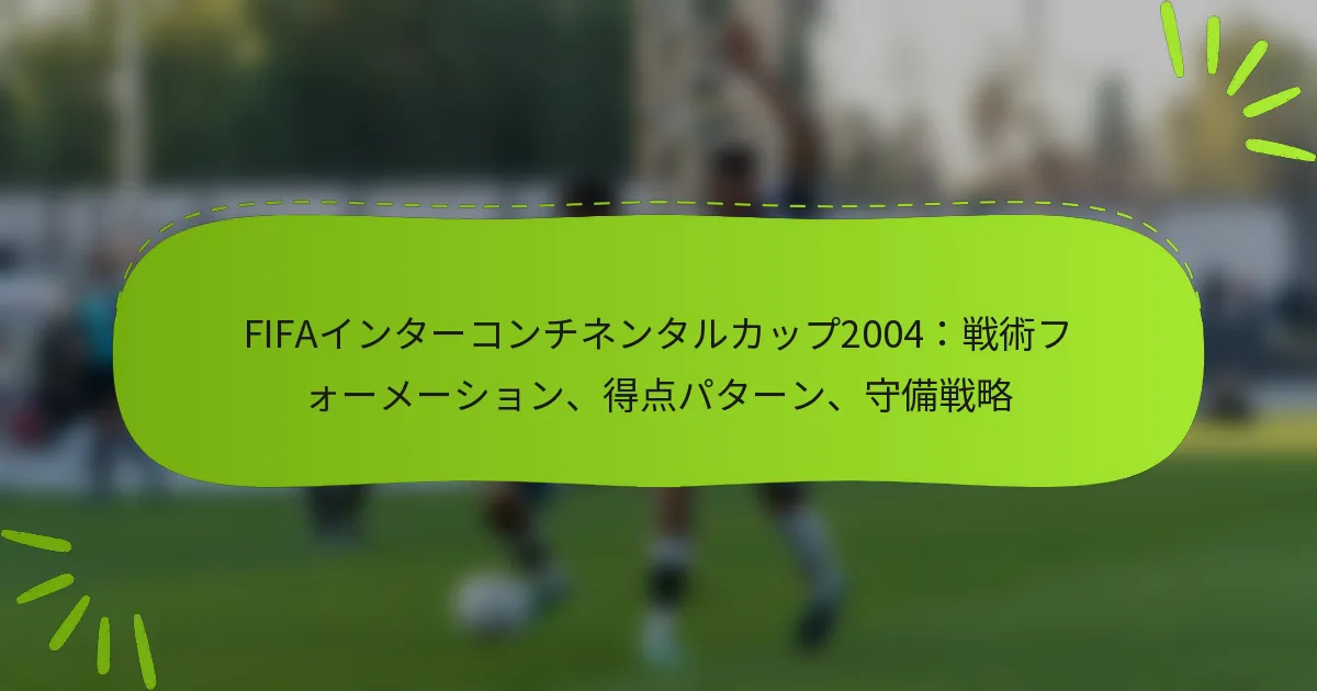 2004年のFIFAインターコンチネンタルカップにおける得点パターンは、ゴールのタイミング、重要な選手の貢献、戦術的フォーメーションなど、さまざまな要因によって形作られました。これらのパターンを理解することで、試合がどのように展開されたか、チームがどのような戦略を採用したかについての洞察が得られます。